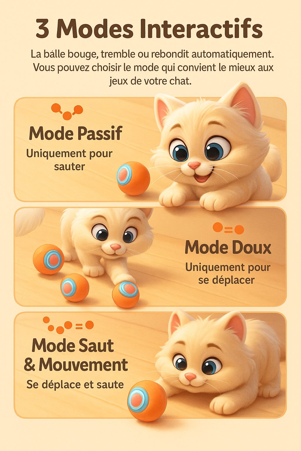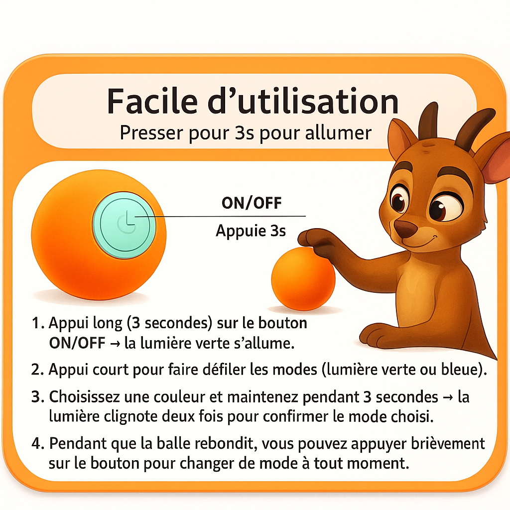 Occupez votre animal avec une balle qui roule toute seule et l’invite à jouer sans cesse !